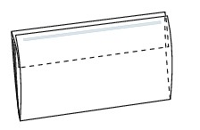 b. With two tabs or wafer seals, the folded edge may be at the top or bottom of the self-mailer. The two tabs or wafer seals must be placed on the open edge, opposite the folded edge. One tab or wafer seal must be placed within 1 inch of the left edge of the piece; the other, within 1 inch of the right edge of the piece. See Exhibit 3.14b. The whole tab need not be placed within 1 inch of the edge. The tabs must not obscure the FIM, postage, or required address information. The folded self-mailer must be prepared from paper with a minimum basis weight of 20 pounds (measured weight for 500 17- by 22-inch sheets).