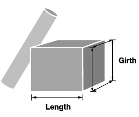 length + girth combined cannot exceed 108 inches (Parcel Post cannot exceed 130 inches)
