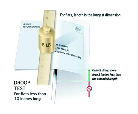 Flat-size mailpieces must meet maximum deflection standards. Flat-size pieces mailed at high density or saturation prices, and flats mailed at basic carrier route prices entered by the mailer at destination delivery units (DDUs), are not required to meet these deflection standards. Test deflection as follows: