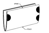 3.16.8 Folded BookletsFolded booklets are mailpieces that are bound and then folded to letter-size. The folded spine may be the leading edge or at the top of the booklet. If necessary, the booklet may be prepared with the spine as the trailing edge, however, this configuration is not recommended. The cover is at least 40-pound paper. Folded booklets must be sealed with nonperforated 1.5" tabs. Exhibit 3.16.8 Folded Booklets