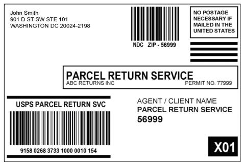An authorized BPRS permit holder has the option to use a label to identify BPRS parcels for return to a designated postal facility. The label is prepared at the mailer’s expense and must meet all format requirements described in 7.5 and 7.6 and specifications in 402.4.0, for a postal routing barcode symbology used to produce a correct, readable barcode for the return address. Each label must be accompanied by complete instructions for its use.