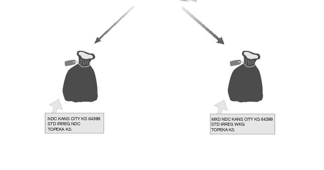 | Origin NDC Sacks: Required, no minimum. Labels: Line 1, use L601, Column B. For Line 2, use “STD IRREG NDC.” Price: Irregular Mixed NDC | Mixed NDC Sacks: Required, no minimum for all remaining mail. Labels: For Line 1, “MXD” followed by L601, Column B information for the NDC serving the 3-digit ZIP Code prefix of the entry Post Office. For Line 2, use “STD IRREG WKG.” Price: Irregular Mixed NDC | Bundling not permitted except for bundles of carrier route irregular parcels under 445.6.0. For DDU, DSCF, and DNDC price eligibility and preparation see DMM 440. |