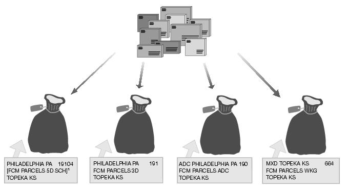 Sacks: Required if 10 or more pounds of pieces to same ADC (see L004); less than 10 pounds in a sack not permitted.