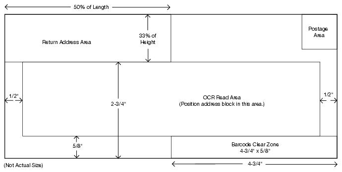 1. For MLOCR FASTforward users, the name of the recipient must appear in the OCR read area. Dark shaded area indicates "free space" for nonaddress printing. Light shaded area indicates preferred clear zone to enhance readability.
