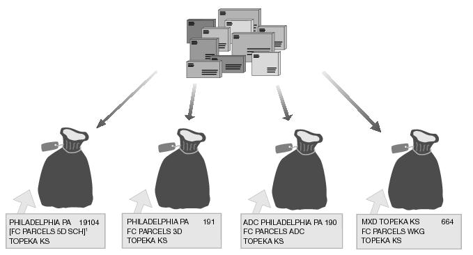 Mail Preparation (435)![]() Marking on each piece in the postage area: “Presorted (or PRSRT) First-Class Package (or PKG).” For optional locations, see 402.2.4. Parcels claiming commercial base prices must also be marked: "CommercialBasePrice"; except for parcels mailed with permit imprint postage. All parcels claiming commercial plus prices must be marked "CommercialPlusPrice." See 402.2.3 for allowable abbreviations. Enter and Deposit (436)![]() Mailing entered at an acceptance point designated by USPS. Preparation![]()