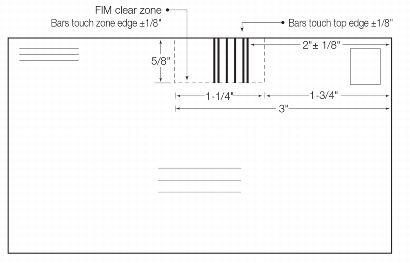 - The tops of the FIM bars must be no lower than 1/8 inch from the top edge of the piece. The tops of the bars may extend over the top edge of the piece to the back (flap) of the piece if at least a 1/2-inch bar height is maintained on the address side.